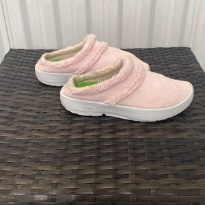 Oofos Oocoozie Mules shoes, women’s size 7 in good preowned condition normal wear and tear a little dirty on the back of the heels and around the rim of the ankle part of the shoe. See pictures for more details overall still in good shape and in good condition, the color is pink.