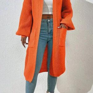 Orange Casual Women's Dual Pocket Drop Shoulder Duster Cardigan