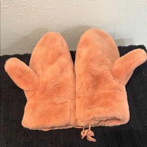 These orange mittens are crafted from plush, fuzzy material, offering a soft and cushiony feel. Perfect for keeping your hands warm, they combine style and functionality in a striking color. Ideal for chilly days, these mittens are a must-have accessory for comfort and warmth.