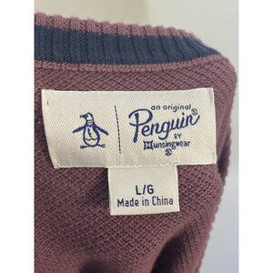 Original Penguin Men's Waffle Long Sleeve Tawny Port Crew Neck Sweater SZ L