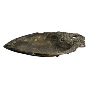 An elegant addition to any collection, this vintage heart-shaped silver plated trinket dish features intricate floral detailing and a timeless silver-tone finish.