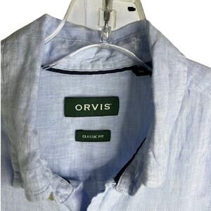 Orvis Button Down Shirt Mens Medium Baby Blue Long Sleeve Linen Classic Fit Summer Casual Relaxed