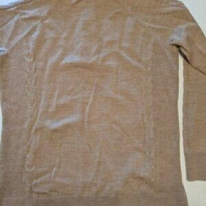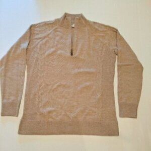 Orvis Men's Sweater Medium 100% Merino Wool 1/4 Zip Tan Caramel Pullover Cable Knit Soft Mock Neck