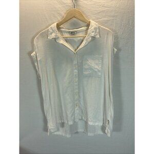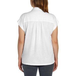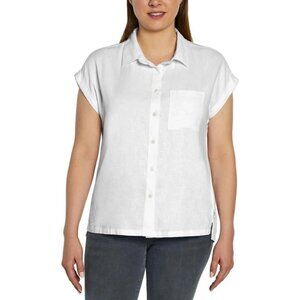 Orvis Women's Button-Up Short Sleeves Linen Blend Shirt White Beach Summer L