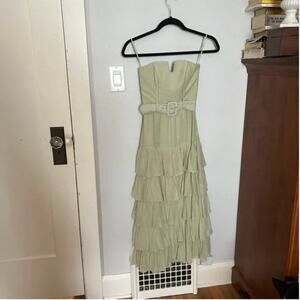 & Other Stories Layered Belted Strapless Midi Dress in Light Green