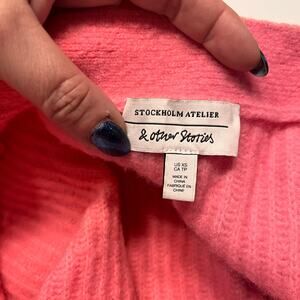 Voluminous rib knit cardigan designed as one piece with a seamless transition between body and sleeves.
