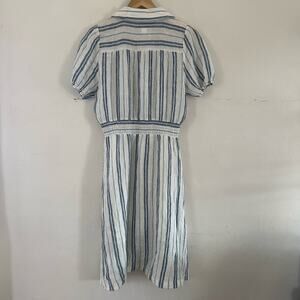 Outerknown Short Sleeve Collared Knee Length Stripe Dress Elastic Waist Small