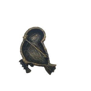 Owl Large Statement Brooch Pin Clear Rhinestones Faux Pearls Bronze Tone Metal