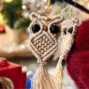 Owl macrame earrings 70s vibes Macrame Wood Hypoallergenic Ear wires Adorable