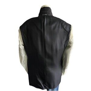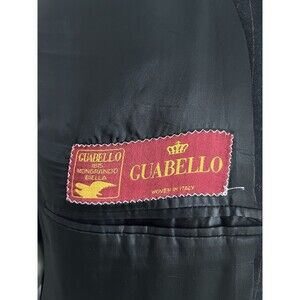 The PAL ZILERY Guabello Men's Blazer in size 42-44R is a sophisticated and stylish designer suit jacket made in Italy. Crafted from a luxurious blend of cashmere and wool, this mid-length blazer features a pinstripe pattern in a brownish black color. With a regular fit and single-breasted front, this blazer is perfect for various occasions including parties, casual outings, and business meetings. The Guabello theme adds a touch of elegance to this timeless piece from the renowned Pal Zileri brand.