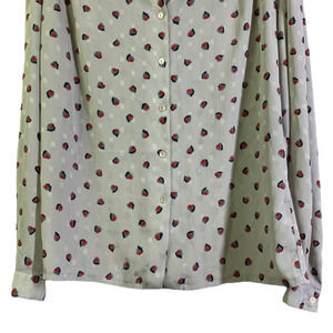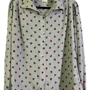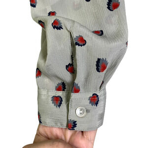PANTHER Vintage Grey & Red Printed Button Down Blouse