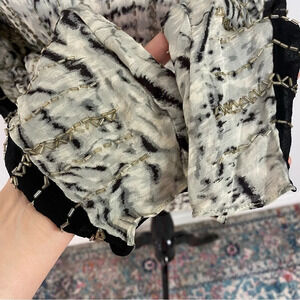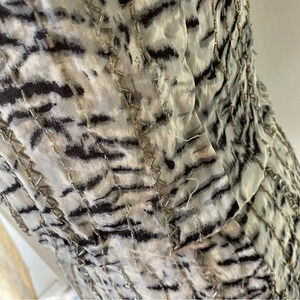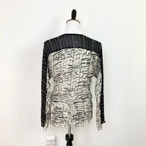 PARKER Animal Print Black Gray Beaded Long Sleeve SILK Sheer Top Women Sz Medium