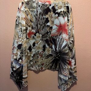 PECK & PECK Butterfly style embellished top blouse brown yellow top