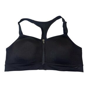 PINK Victoria’s Secret Black Front Zip Sports Bra Racer Open Back Womens size L