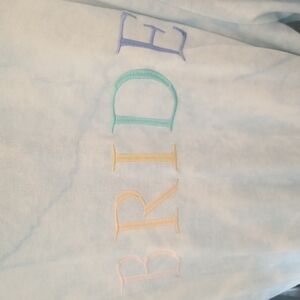 The perfect gift for a honeymoon or anniversary, this "Bride" embroidered robe is composed of a soft jersey knit for cozy comfort.