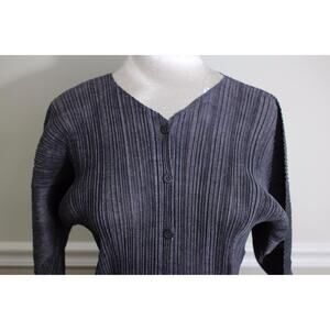 PLEATS PLEASE ISSEY MIYAKE Grey Crinkled Button Up top blouse (bl100
