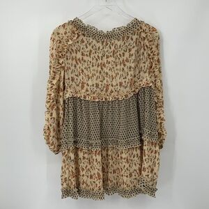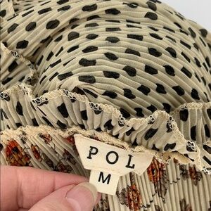 POL Babydoll tiered ruffle blouse colorblock tassel floral crinkle ivory Medium
