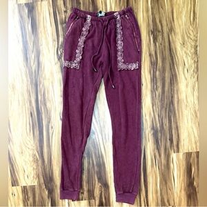 POL Maroon Lace Accent Jogger Pants