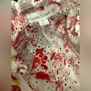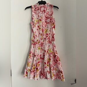POUPETTE ST BARTH CLARA PINK FLORAL TASSEL EYELET RUFFLE TIERED MINI DRESS M