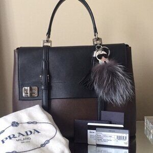 You’re looking at 100% authentic Prada tote. The bag is in a great condition with some minor wear,please,see pictures. The bag comes with authenticity cards and dust bag, the keychain won’t be included