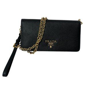 PRADA Black Saffiano Gold Wallet On Chain WOC Wristlet
