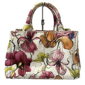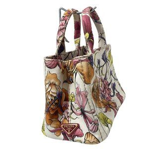 PRADA Canapa - White Pink Multi Canvas Tote Bag 554-050625