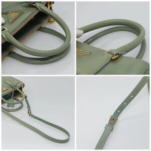 PRADA Galleria Hand Bag Safiano leather 2way Gold Light green Auth 133778