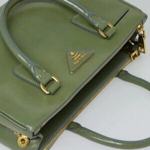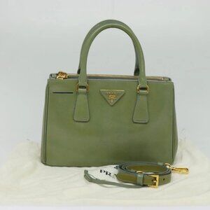 PRADA Galleria Hand Bag Safiano leather 2way Green Gold Auth