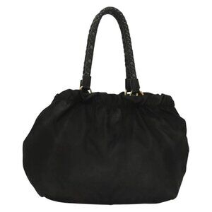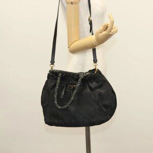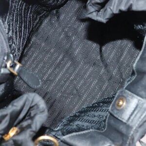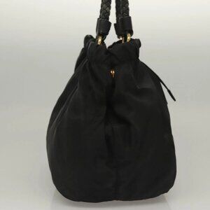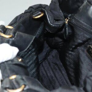 PRADA Hand Bag Nylon 2way Black Gold Auth BA3666