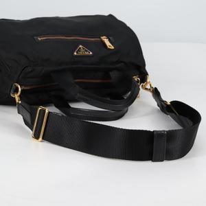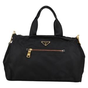 PRADA Hand Bag Nylon 2way Black Gold Auth yk19352V