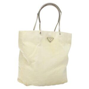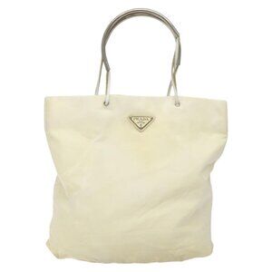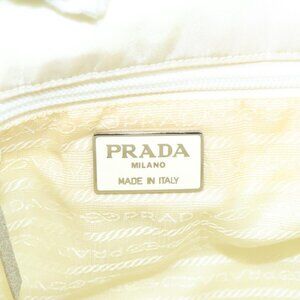 PRADA Hand Bag Nylon Cream Silver Auth EC470