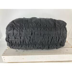 PRADA LARGE BLACK NYLON HANDBAG WITH BRAIDED LEATHER HANDLES