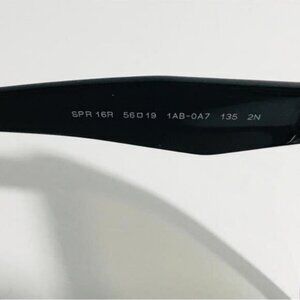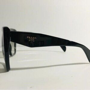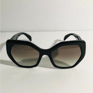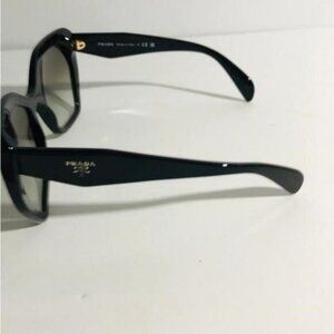 PRADA PR 16RS HERITAGE  Frame Color: 1AB0A7 Black Lens Color: Grey Gradient Polarized Lens: No Lens Material: plastic Prescription Capable: Yes Frame Shape: Irregular Frame Material: Plastic Frame Type: Full Rim Gender: Women's  Lens Width: 56 Bridge Width: 19 Arm Length: 135 Lens Height: 50