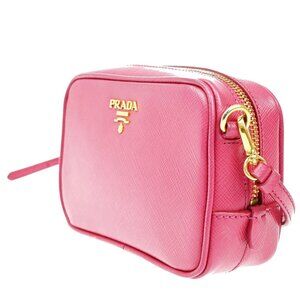 PRADA Saffiano Mini Crossbody Shoulder Bag Leather Pink Gold Italy