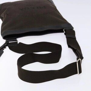 PRADA Shoulder Bag Canvas Leather Brown Silver Auth