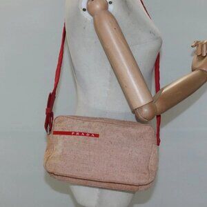 PRADA Sports Shoulder Bag Canvas Beige Red Auth