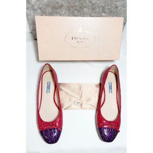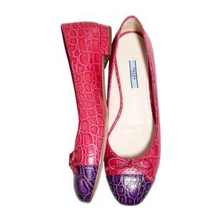 PRADA St. Cocco Bicolo Croc Embossed Leather Bow Flats in Red/Purple - EU Sz 40