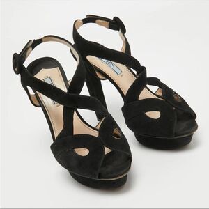 PRADA Suede Block Heel Platform Sandals Black Size 39