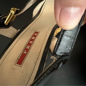 PRADA Womens Patent Leather Peep Toe Buckled Platform Sandals Black EU 40 Read