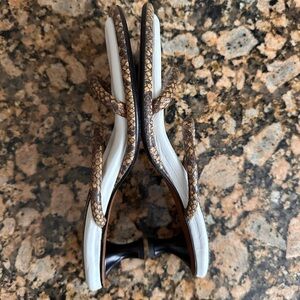 This Italian kitten-heel sandal is designed to look and feel soft and cushy with rolled double straps, piped trim along the rounded toe and a padded footbed.