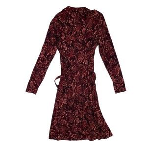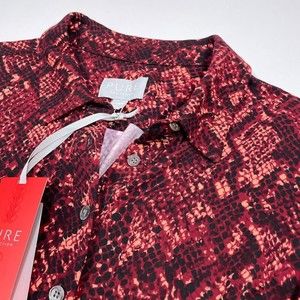 PURE Collection Dress Size 8 / 10 Red Snakeskin Button Front Empire Long Sleeve