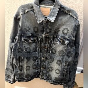 PURPLE BRAND MONOGRAM PRINT FADED DENIM JACKET SIZE LARGE