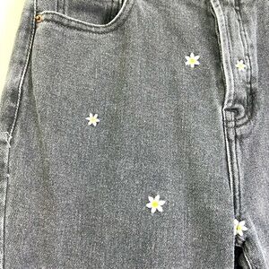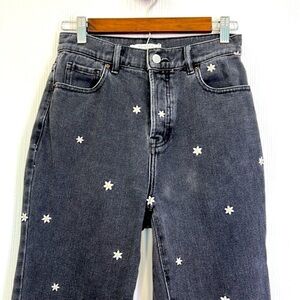 Pacsun - Black Stonewashed Embroidered Daisy High Rise Straight Jeans Size 25