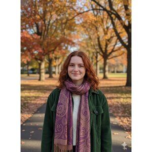 This beautiful maroon and gold paisley shawl scarf adds an elegant touch to any outfit. Made from soft polyester knit fabric, it features a classic paisley design with stylish fringe accents. Perfect for fall, winter, and spring, this versatile piece can be worn as a wrap, scarf, or shawl to suit your style. A chic accessory that blends warmth, comfort, and timeless charm.
