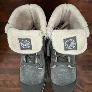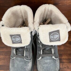 Palladium Women's Baggy High Top Lace Up Leather Distressed Grey Sherpa Size 10