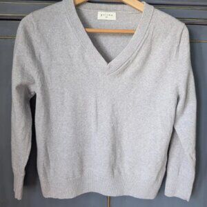 Paloma Medium Weight Merino Wool Sweater Light Heather Grey V-neck 3/4 Sleeve Small Petite