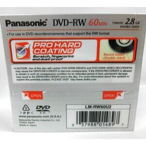 Panasonic DVD-RW 60 Min 2 Pack DVD Camcorder Tape Disc LM-RW60U2 Lot of 2 New