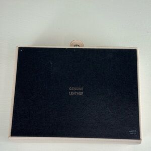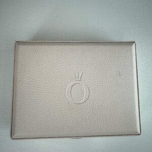 Sophisticated ivory case with embossed logo. Ideal for jewelry storage in good condition with minimal light stains.