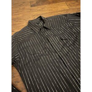 Panhandle Slim Men's Country Western Black Silver Stripes Shirt 16.5 Pearl Snap. Condition is Pre-owned - Good. Shipped with USPS Ground Advantage.
