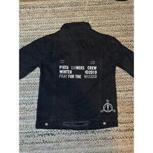 This jacket is a must-have for any Panic at the Disco fan. It was worn during their Winter 2019 Pray For The Wicked Tour and is a size M in black. The jacket features the tour name and artwork on the back and the band's name on the front. Perfect for any music memorabilia collector or fan.